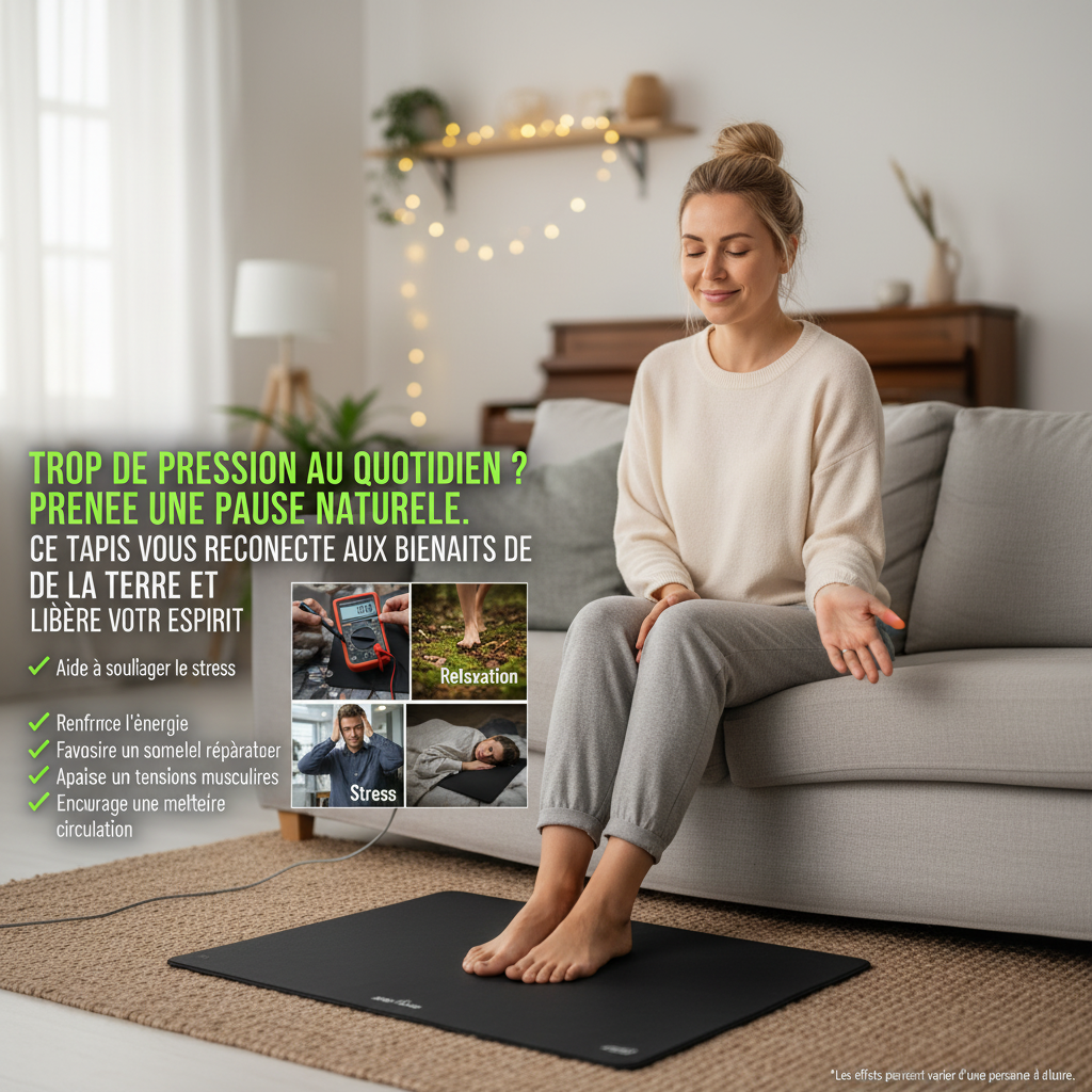 Le grounding, ou mise à la terre, est une pratique ancestrale qui consiste à reconnecter votre corps avec les électrons naturels de la Terre. En marchant pieds nus ou en utilisant un tapis de grounding, vous permettez à votre organisme d'absorber les charges négatives du sol, ce qui aide à neutraliser les radicaux libres et à réduire l'inflammation.